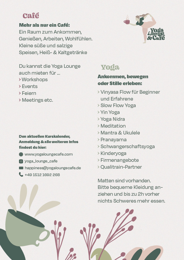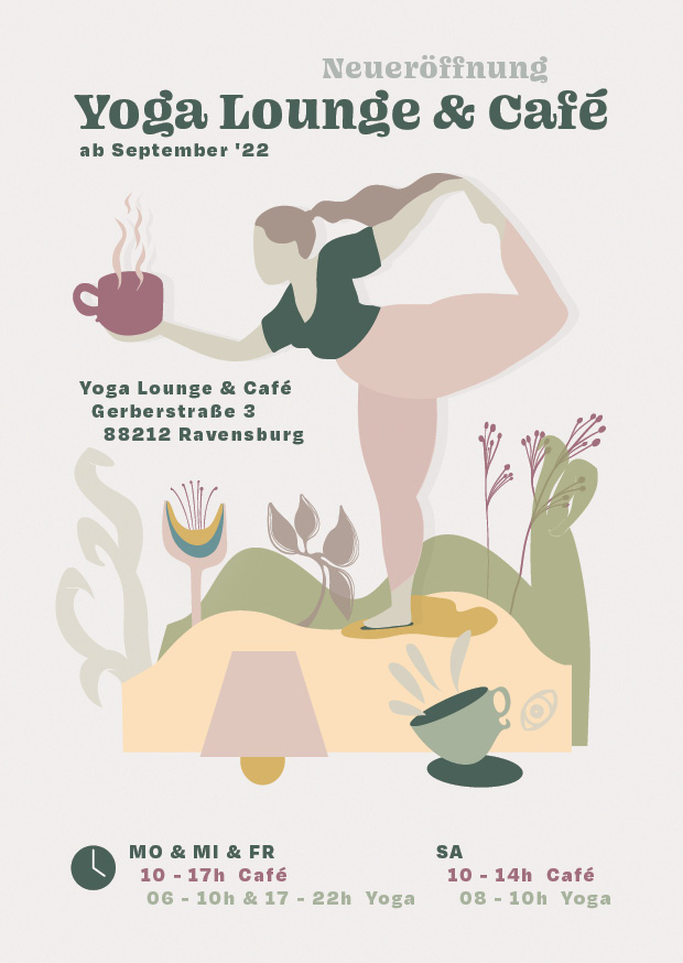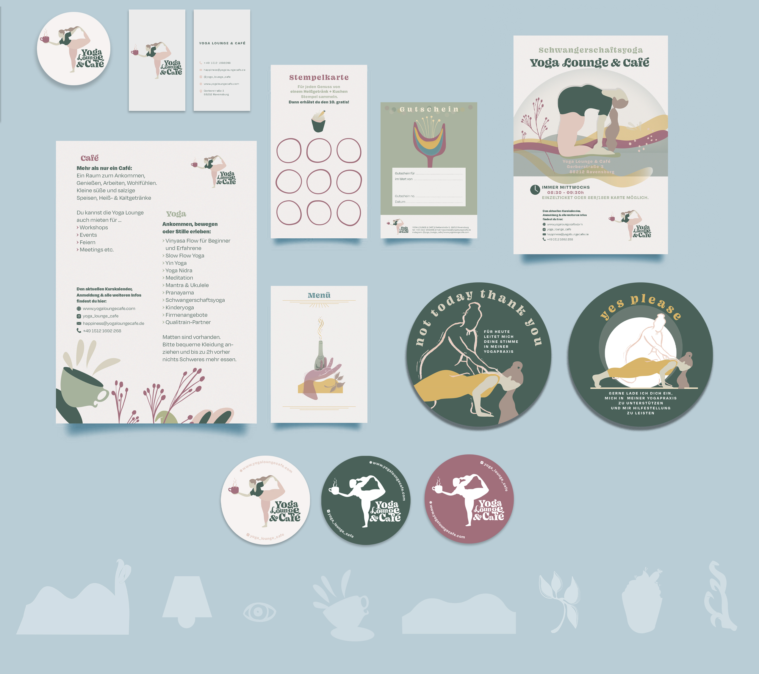 Gestaltung des Logos und Printprodukte für Yoga Lounge & Café in Ravensburg www.yogaloungecafe.com/
