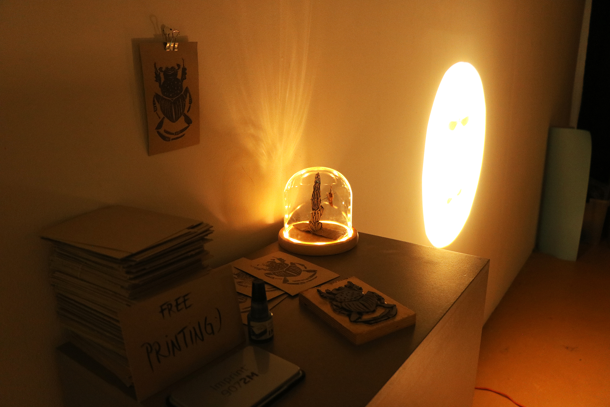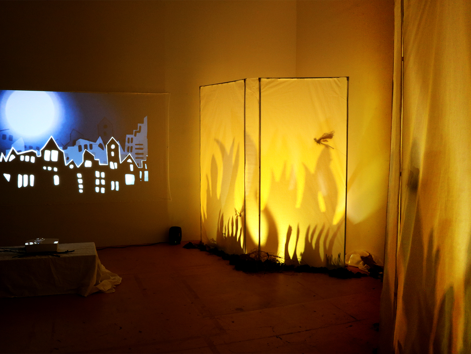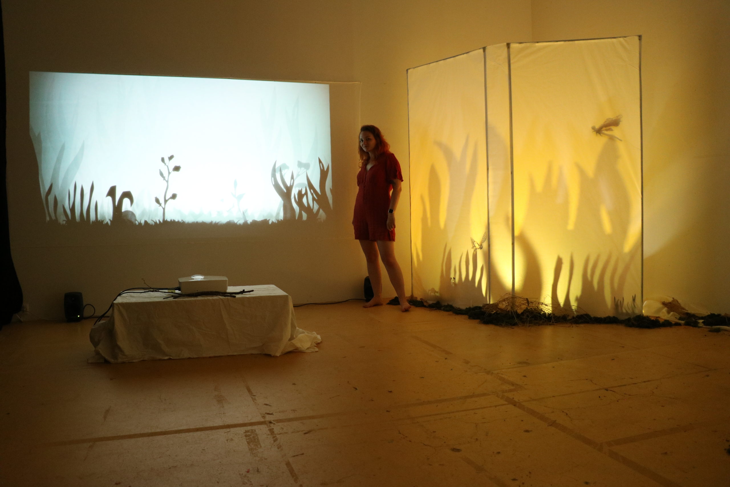 Ausstellung von Master Arbeit "Insectum - einschneidende Ereignisse" - zum Thema Insektensterben habe ich drei kurze Animationsfilme gestaltet und diese in einer Installation präsentiert. Diese beinhaltet 5 Stellwände und Scherenschnitte die in einer Größe gefertigt wurden, so dass der/die Betrachter:in sich in einer übergroßen Wiese wiederfindet. Die Installation soll zum einen die kleine Welt der Insekten für uns Menschen greifbarer und größer machen und zum Anderen auf die Zerbrechlichkeit und die Sensibilität der Tiere aufmerksam machen. Dar Trailer zum Film: Unter moving image oder https://vimeo.com/manage/videos/670578394