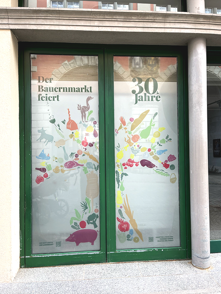 Illustration und Schaufenstergestaltung für den Bauernmarkt in Ravensburg